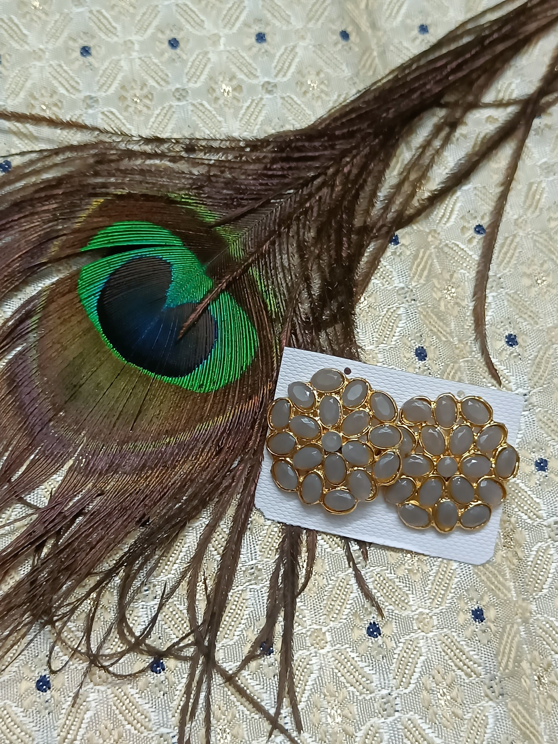These gold-plated studs feature elegant grey stones, combining timeless style with subtle sophistication.