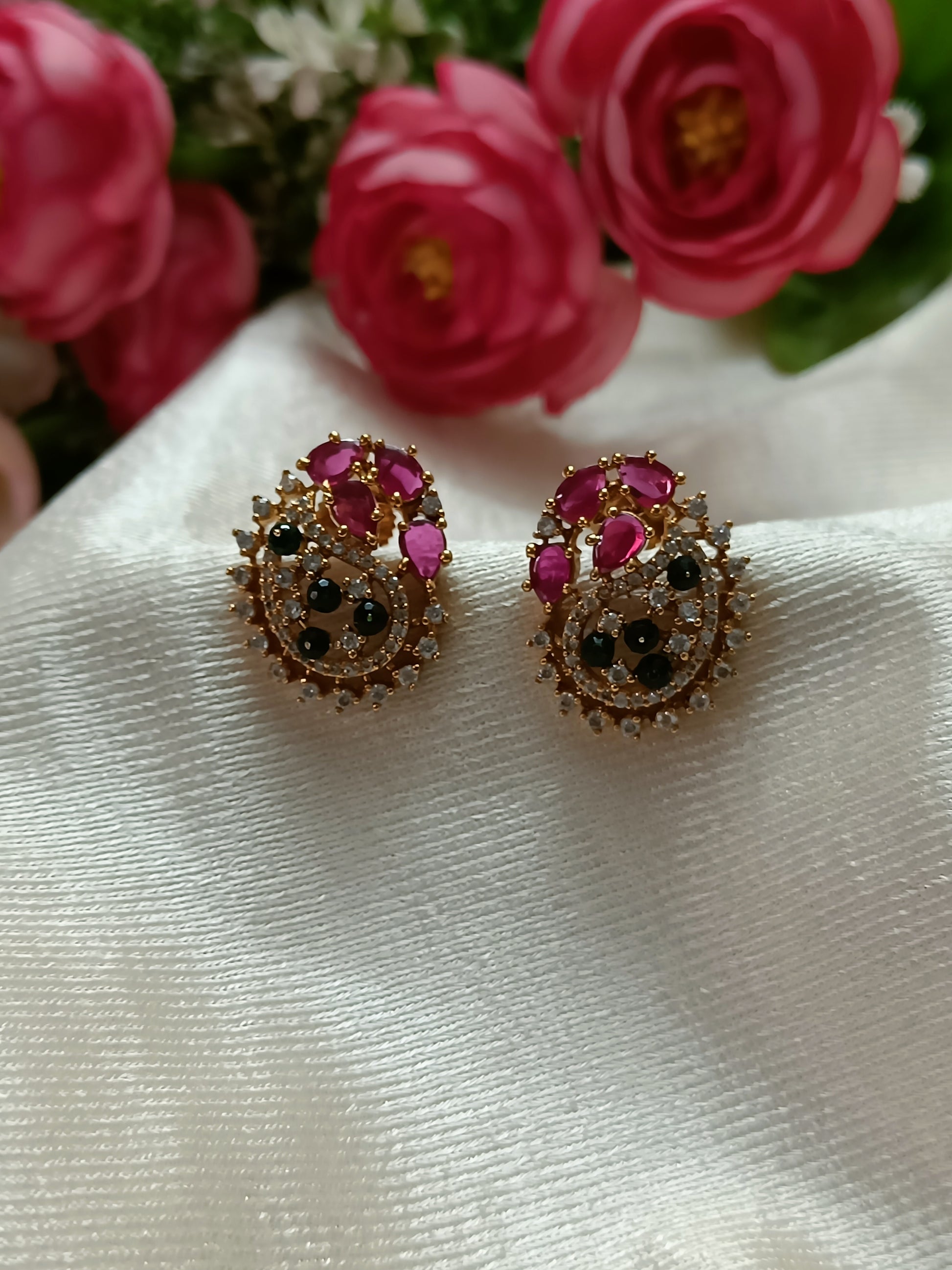 These multi-colored mango design kundan AD stone stud earrings combine traditional elegance with vibrant charm.