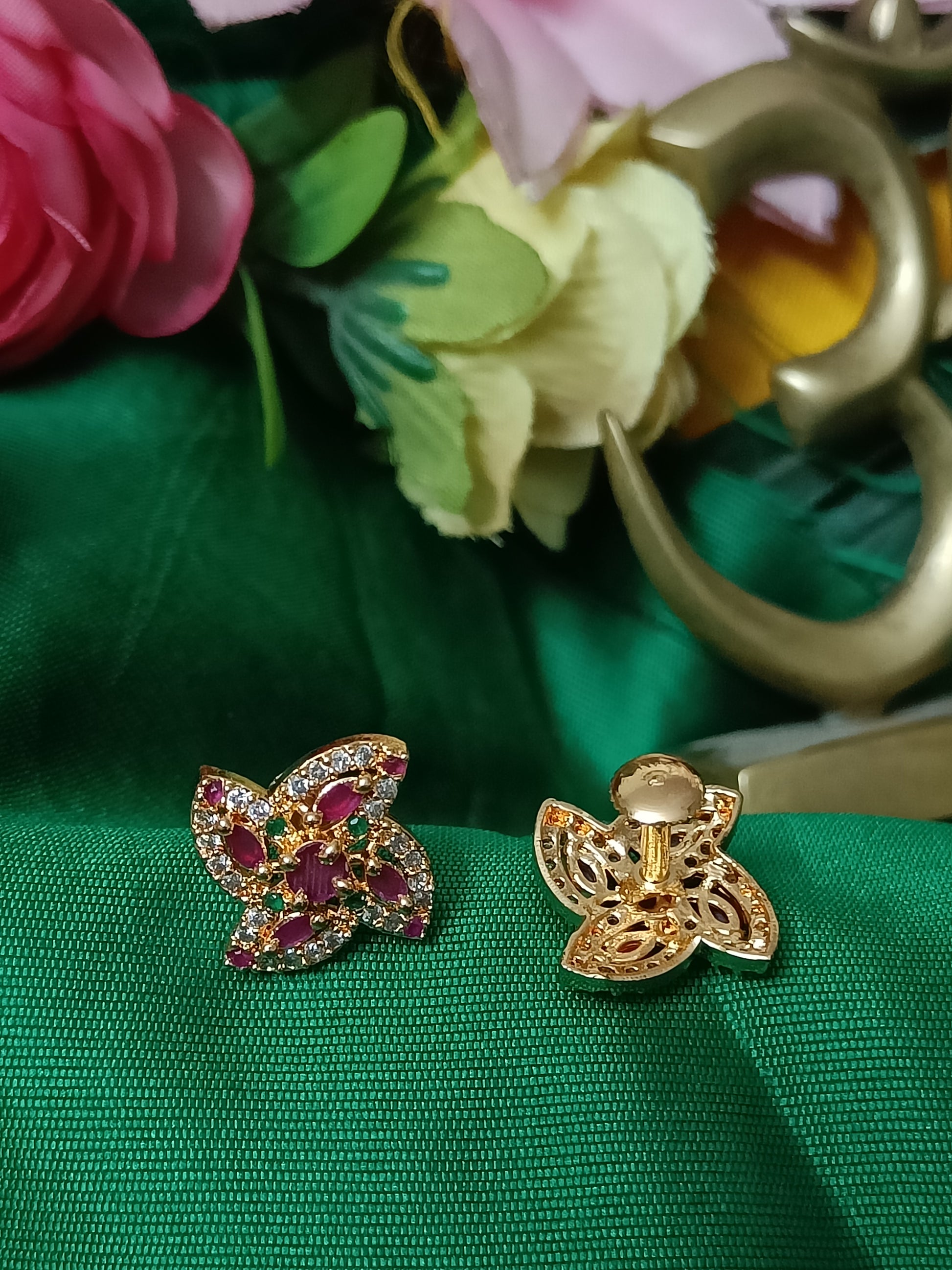 These multi-stone floral design stud earrings add a vibrant touch to any outfit.